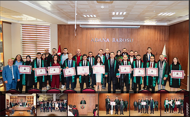 ADANA BAROSU BAŞKANI AV. VOLKAN BÖKE: “GEÇEN YIL BU SALONDA MAZBATA HEYECANINI YAŞARKEN, BU YIL DA GENÇ MESLEKTAŞLARIMIZIN RUHSAT HEYECANINI YAŞIYORUZ” Adana Barosu’nda staj dönemlerini başarıyla tamamlayan Muhammed Furkan Cenger, Hüseyin Tunahan Yaşar, Melisa Altunkanat, Furkan Özcan, Hatice Aybike Üngör, Oktay Ayaşan, Serkan Salmanlar, Zeynep Buse Gümüş, Ramazan Azim Okyay, Gökçe Hilal Yazğan, Seçil Ilgın, Ahmet Alperen Bolat, Ahmet Batıkan Şahin ve Zeynep Ata Ersoy için ruhsat töreni düzenlendi