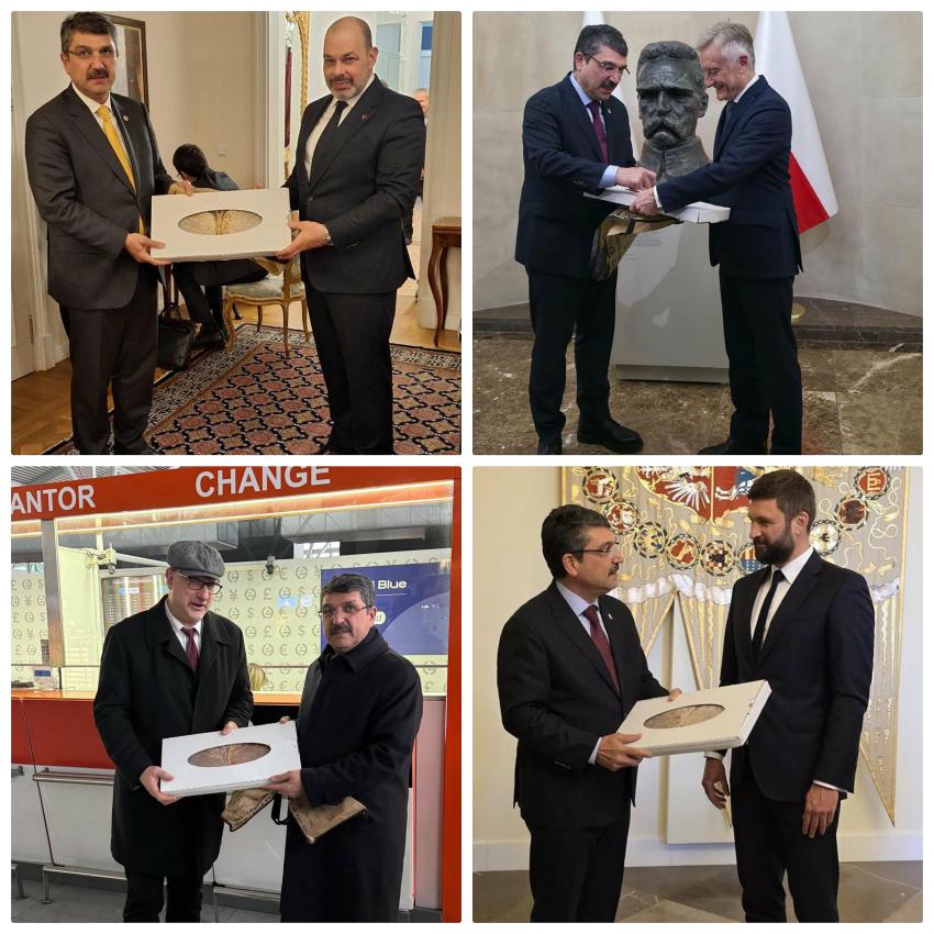 | Resmi temaslarda bulunmak üzere Polonya'da olan AK Parti Milletvekilleri Polonyalı mevkidaşları ve iş adamlarına Bingöl Balı'nı hediye etti. | ||