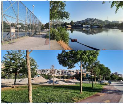 Koca park deniyor, sadece yürüyüş alanları bırakılmış. Yani uzunluğu 500 metre kadar, genişliği ne bilmiyorum. İçinde 6 adet spor tesisi, bir çocuk parkı, birde gençlerin spor yapacağı aletler.